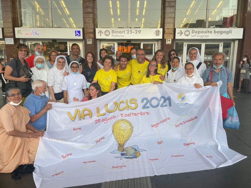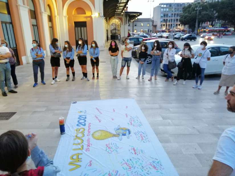 Abbiamo consegnato questo piccolo messaggio di Nelson Mandela a tante persone incontrate nelle stazioni durante la via Lucis. A tutte quelle povertà che hanno il nome di “abbandono”, “solitudine”, “dipendenza”, “sfruttamento”, abbiamo voluto dire che, a prescindere dalla situazione in cui ci troviamo, siamo stati creati per essere Luce. E che quando la nostra fiamma si fa fioca, c’è sempre qualcuno che viene a cercarti per dirti che ti vuole bene e che… sei speciale. Sempre. Capita soprattutto che questo qualcuno sia qualcuno che non ti aspetti, in modi che non immagini, come le persone che in stazione hanno visto dei giovani vestiti di giallo venirgli incontro e si sono domandati: ”Ma questi che vogliono?!”