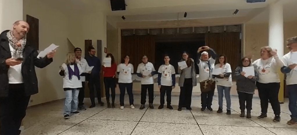 Nel salone delle suore francescane che ci ospitano, c’è un bel clima di festa. Una volta arrivati, scriviamo il nostro nome su un foglietto e lo inseriamo in una scatola. Poi facciamo tanti bei giochini per cominciare a entrare in confidenza tra di noi. Così, nel grandissimo salone che le suore ci hanno messo a disposizione, cominciamo a muoverci a suon di musica, mentre volano gambe e abbracci.