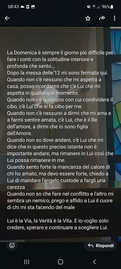 In una di queste giornate di un paio di mesi fa, davanti a Gesù, ho scritto queste righe che, guardando la puntata di ieri, ho sentito di voler condividere. Credo che sia questo per me, come per Giacomo, l’annuncio d’Amore più autentico che posso donare.
